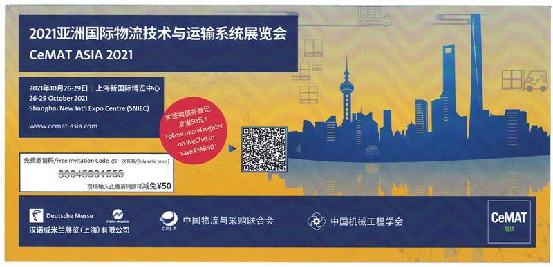 恭(gong)請莅臨(lin):W2館 G1-2 | 2021 亞洲(zhou)國際物(wu)流技術(shu)與運輸(shū)系統展(zhǎn)覽會 | CeMAT ASIA 2021